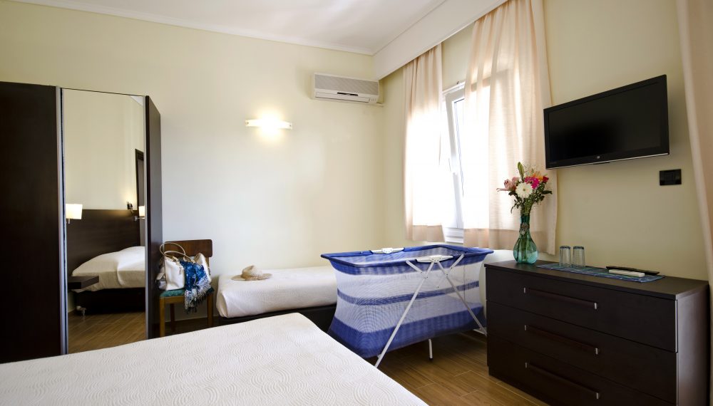 Our Family Suite offers 1 extra large double bed and 2 single beds, which can accommodate 4 persons.